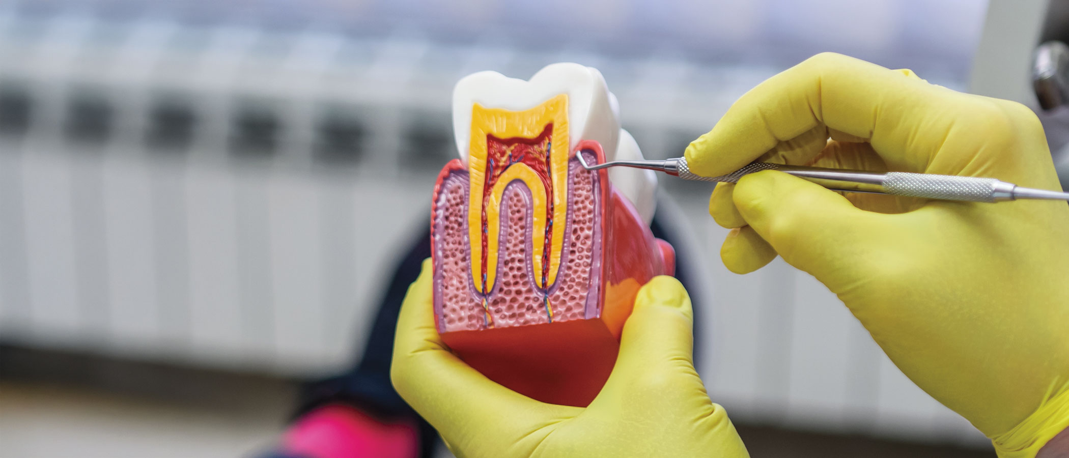 Cette spécialité s’occupe du traitement du tissu pulpaire, communément appelé « nerf ». Son but : assainir les canaux radiculaires en supprimant la flore bactérienne et permettre la cicatrisation des tissus environnants la racine dentaire.